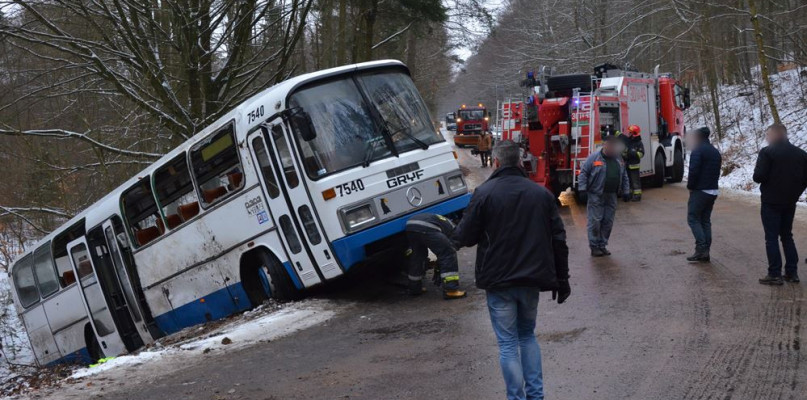 Jak wynika ze wstępnych ustaleń policji, kierowca autobusu, jadąc od strony Szymbarka, prawdopodobnie z powodu śliskiej nawierzchni stracił panowanie nad pojazdem i wpadł do rowu. Autokar przewrócił się na bok. Wszystkim pasażerom udało się wydostać z pojazdu samodzielnie. Do szpitala trafiło siedem osób. Jak informuje Jarosława Krefta, rzecznik prasowy KPP Kartuzy, na szczęście nikt nie został poważnie ranny.
