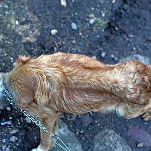 Dwa psy: jeden z nich wychudzony, ważący zaledwie 4,5 kg, ze śladami na pysku po drucie lub sznurze, drugi - z licznymi ranami na całym ciele, otarciami na szyi od kolczatki. Brudne, głodne, zapchlone. Jeden do picia miał brudną wodę, drugi - wodę z kałuży. Taki widok zastali kilka dni temu nieopodal Szymbarka inspektorzy OTOZ Animals.