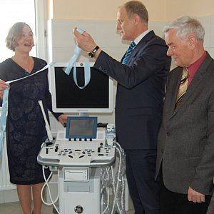 Symbolicznego otwarcie pomieszczenia USG z nowym sprzętem dokonała Dyrektor SPZOZ, Joanna Komorowska przy udziale burmistrza Wojciecha Kankowskiego, wiceprzewodniczącego Rady Miejskiej w Żukowie Albina Bychowskiego oraz przedstawicieli personelu banińskiego ośrodka.