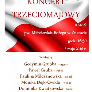 O godz. 16.30 w kościele pw. św. Miłosierdzia Bożego w Żukowie odbędzie się koncert 3-majowy.
