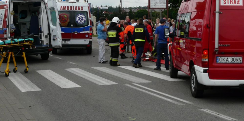 W wyniku zderzenia z osobówką poważnie ranni zostali 17-latek kierujący skuterem i 16-letni pasażer jednośladu. Jak informuje policja, obaj są w ciężkim stanie. Jednego z poszkodowanych przetransportowano do szpitala śmigłowcem LPR.