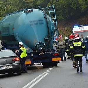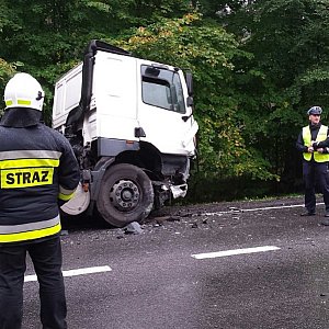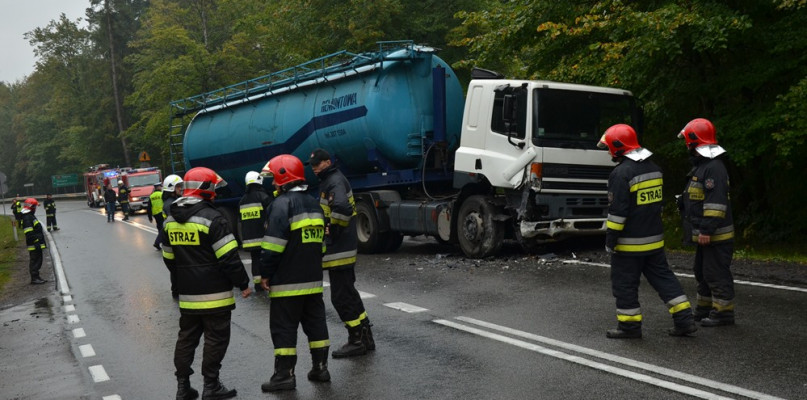 Pięć osób zostało rannych w wyniku zderzenia ciężarówki, busa i samochodu osobowego. Do wypadku doszło około godz. 13.00 we Wieżycy, na drodze krajowej nr 20. Droga przez dłuższy czas była całkowicie zablokowana.