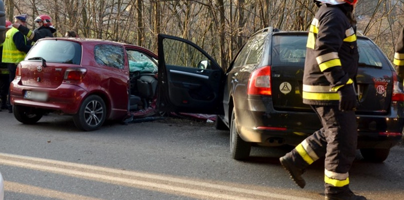 Jak wynika ze wstępnych ustaleń policji 82-letni kierowca toyoty yaris z nieustalonych przyczyn zjechał na przeciwny pas ruchu i zderzył się z jadącą z przeciwka skodą. Poszkodowanych zostało pięć osób: dwie podróżujące toyotą i trzy skodą. Do szpitala trafiły ostatecznie cztery osoby.