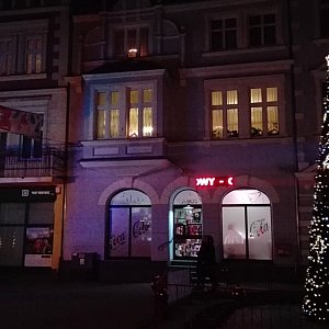 W tym smutnym mieście podświetlony herb Kartuz powinien w tym miejscu stać przez cały rok.