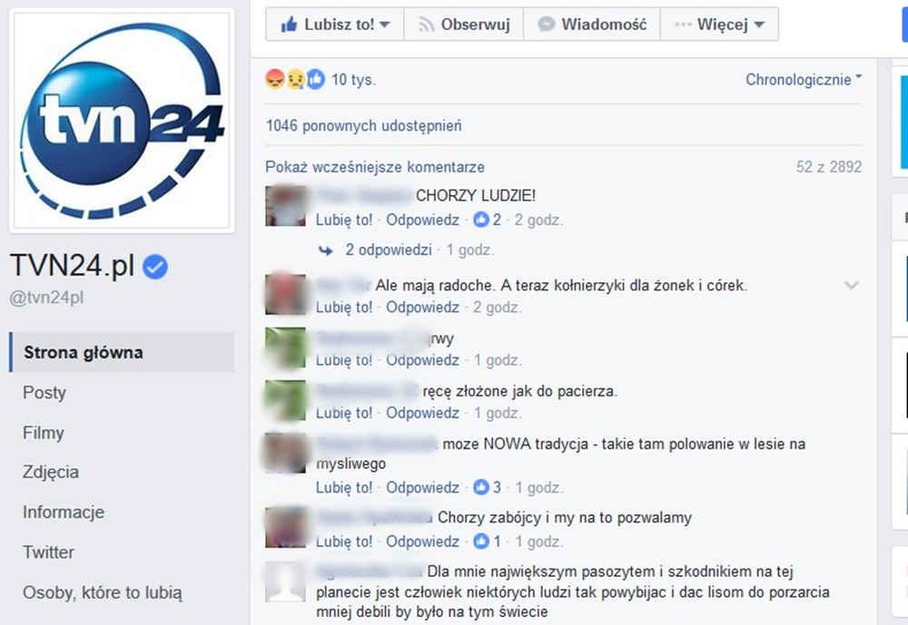 Oburzenie internautów wywołały publikacje poświęcone uroczystemu pokotowi w Pażęcach, koło Stężycy. Myśliwi pokazali m.in. 200 zabitych lisów ułożonych na świerkowych gałęziach. Większości komentarzy nie da się zacytować. Ludzie wyzywają myśliwych, grożą im i życzą śmierci.