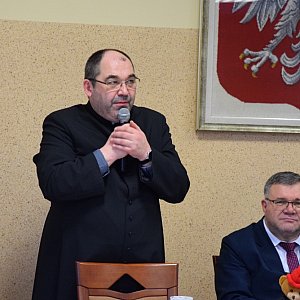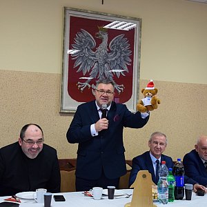 Zebrani goście, m.in. ks. proboszcz Ryszard Różycki, burmistrz Mieczysław Gołuński, wicestarosta Bogdan Łapa, gratulowali krwiodawcom, złożono także życzenia z okazji zbliżających się Świąt Bożego Narodzenia.