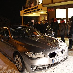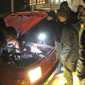 Uczestnicy spotkania mieli możliwość obejrzeć z bliska samochody, którymi przyjechali: przedstawiciele autoryzowanego serwisu Auto Miras, Adrian Klawikowski ? marką SAAB, Dawid Galeński ? Audi 80B, Adrian i Patryk Gojtowscy ? Wartburgiem i Mercedesem W124, Bartłomiej Leszk ? Mercedesem W124 coupe. Pomimo srogiego mrozu młodzież z zainteresowaniem słuchała historii samochodów oraz ciekawostek na ich temat związanych.