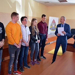 Dziś w siedzibie PSP w Kartuzach spotkali się zwycięzcy gminnych eliminacji, by walczyć o udział w etapie wojewódzkim konkursu. Najpierw musieli napisać test - najlepsi odpowiadali na pytania w etapie ustnym. Niektóre zagadnienia były naprawdę trudne. Uczestnicy musieli wiedzieć, w co powinno być wyposażone uzupełniające źródło wody, co oznacza skrót: KCKRiOL, co to są stałe urządzenia gaśnicze, czym jest zjawisko kondukcji. Musieli wymienić też rodzaje prądów gaśniczych, znać średnice węży pożarniczych tłoczonych czy opowiedzieć o systemie podawania wody na duże odległości.