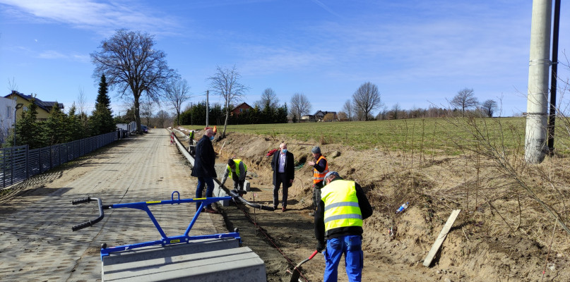 W Przyjaźni przy ul. Łąkowej powstaje ścieżka rowerowa. Trwają prace ziemne, wykonawca realizuje m.in. układanie obrzeży. Po wykonaniu tych prac na trasie pojawi się kostka betonowa.