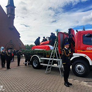Kondukt zatrzymał się też przed strażnicą OSP Żukowo, gdzie po raz ostatni dla Łukasza i Karoliny zawyły syreny. Stamtąd druhowie OSP Żukowo na swoich barkach przenieśli trumny na żukowski cmentarz.