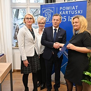 Władze powiatu kartuskiego podpisały umowę z przedstawicielami firmy Viabet z Sierakowic na budowę ciągów pieszo-rowerowych przy drogach powiatowych. Powstaną m.in. na odcinkach: Kartuzy-Prokowskie Chrósty, Lniska-Niestępowo czy Tokary-Miszewo.