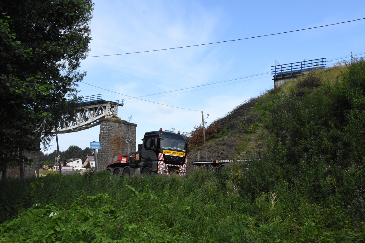 Dziś rano rozpoczęły się prace z tym związane. Najpierw podjęto próbę usunięcia nawierzchni mostu, czyli torowiska z barierami ochronnymi, zaś w następnej kolejności demontowane będzie przęsło. Zostanie ono tymczasowo przeniesione na specjalne miejsce u podnóża mostu.