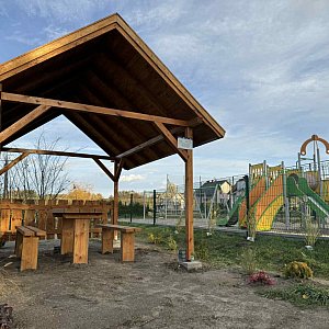 Dzięki przyznanemu przez Polskie Sieci Elektroenergetyczne S.A. grantowi na terenie szkoły powstała altana, która służy nie tylko uczniom, ale także mieszkańcom wsi marzącym od dawna o rodzinnym miejscu spotkań.