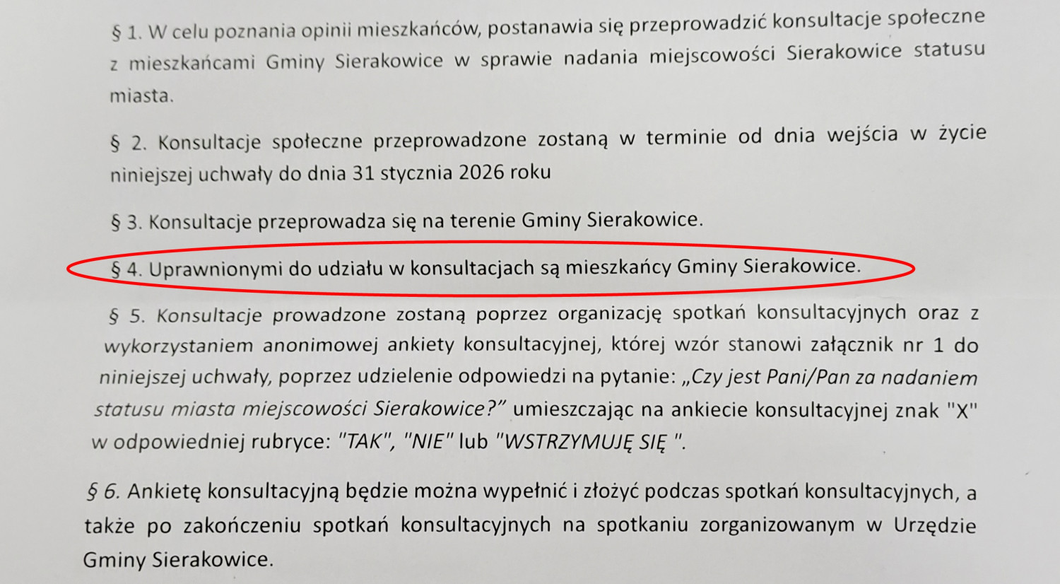 Czy zatem ankietę konsultacyjną w sprawie nadania praw miejskich Sierakowicom wypełniać będą także dzieci, w tym te nie umiejące jeszcze czytać i pisać? Byłoby to przecież zgodne z przepisami.