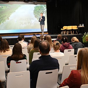 Magdalena Maliszewska i Margaretta Mielewczyk przedstawiły projekt „Kliknij w przeszłość - jak nowe technologie promują dziedzictwo kulturowe Żukowa”, pokazując, jak cyfryzacja może ożywiać lokalną historię. Marcin Wolski z Edukacji 3.0 opowiedział o procesie współtworzenia narracji muzealnych przez młodzież i o tym, jak od pomysłu dojść do pełnowymiarowego cyfrowego projektu.