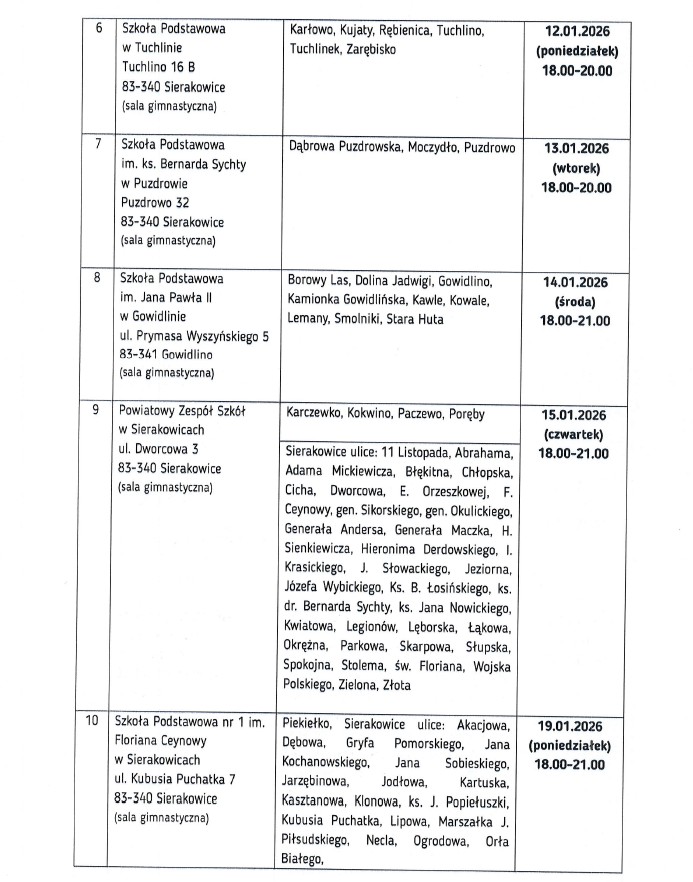 Urząd Gminy Sierakowice opublikował właśnie harmonogram zebrań. Pierwsze odbędzie się 11 grudnia w Załakowie. Kolejne - w Kamienicy Królewskiej (17 grudnia) i Łyśniewie Sierakowickim (18 grudnia). Następne spotkania odbędą się w styczniu.