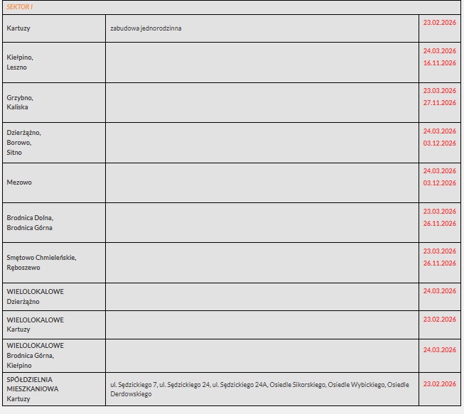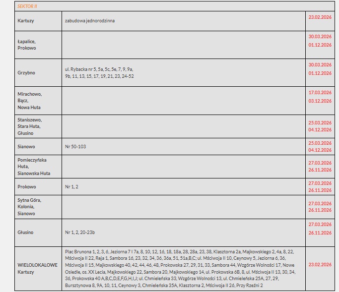 Nowy system obejmie zarówno miasto Kartuzy, jak i tereny wiejskie. W przypadku miasta oraz zabudowy wielolokalowej odbiór odpadów tekstylnych zaplanowano jednorazowo - 23 lutego 2026 roku.