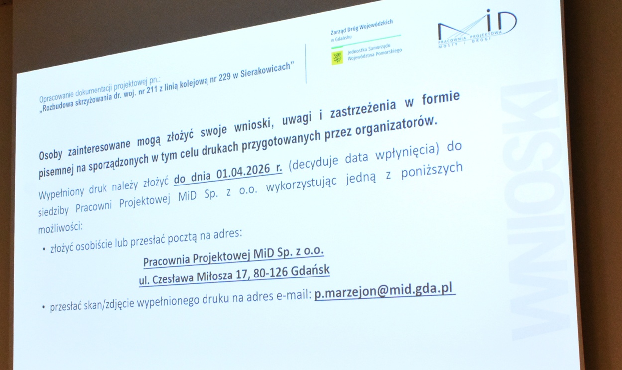Dziś w Sierakowicach z mieszkańcami spotkali się przedstawiciele Pracowni Projektowej MiD Sp. z o.o., która przygotowuje dokumentację rozbudowy skrzyżowania drogi wojewódzkiej 211 z linią kolejową nr 229.
