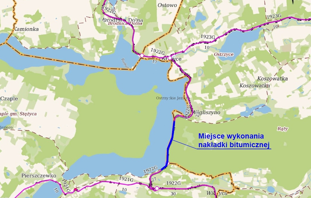 Planowany remont obejmie blisko 900 metrów drogi, w tym wykonanie nakładki bitumicznej na odcinku Ostrzyce - Kolano. Nowa nawierzchnia pojawi się na całej szerokości jezdni, a miejscami także na jednym pasie ruchu.