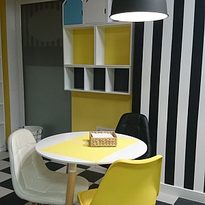 Moc kolorów, ciepły wystój sali sprawiają, że można się tu czuć jak w domowym gniazdku. I o to właśnie chodzi, by dzieci czuły się bezpiecznie i szczęśliwe. Sala stworzona, aby radosne uśmiechy, nigdy nie znikały z dziecięcych twarzy. Sala zabaw przeznaczona dla *dzieci w wieku od 0 do 12 roku życia.*