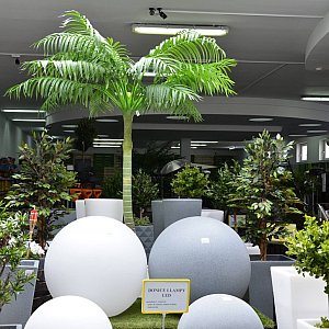 Oferujemy również deski tarasowe, nowoczesne podkłady kolejowe, fontanny, donice, lampy ledowe, a także wysokiej klasy sztuczną trawę. Teraz do szerokiej gamy roślinności ozdobnej dołączyły również palmy, dzięki którym można stworzyć własną egzotyczną wyspę w swoim ogrodzie.
