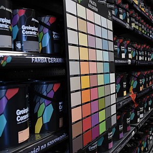 W tej chwili dostępne są w super cenach: farby dekoracyjne oraz armatura łazienkowa.