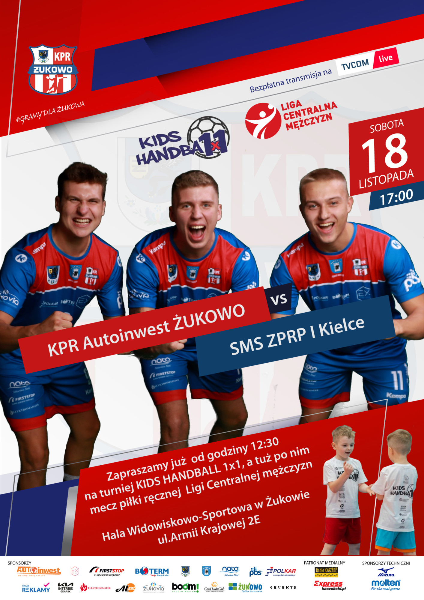W sobotę 18 listopada o godzinie 17:00 w Hali Widowiskowo - Sportowej w Żukowie ul. Armii Krajowej 2E rozegrany zostanie mecz o Mistrzostwo Ligi Centralnej Piłki Ręcznej Mężczyzn. KPR Autoinwest Żukowo zmierzy się z drużyną SMS ZPRP I Kielce.