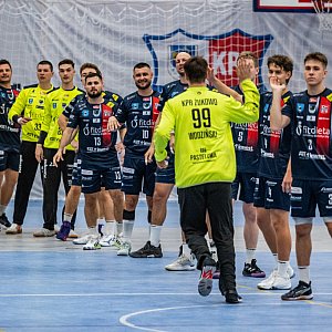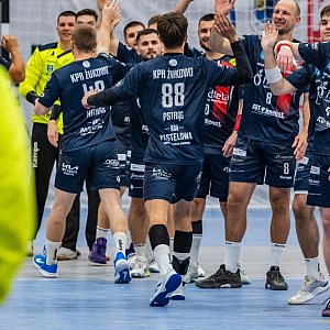 Po przerwie żukowianie wyraźnie zmotywowani, ruszyli do odrabiania strat. W ich grze pojawiło się kilka drobnych błędów, które doświadczony superligowy zespół bezlitośnie wykorzystał. W 8. minucie drugiej połowy doprowadzili do remisu, a chwilę później wyszli na prowadzenie 23:22.