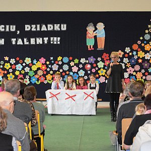Udział w uroczystości zadeklarowało przeszło 300 Babć i Dziadków, w związku z czym cała impreza odbyła się na hali sportowej, udekorowanej między innymi w narysowane przez uczniów portrety seniorów. Spotkanie rozpoczęła dyrektor Anna Słupikowska, która przywitała zebranych gości i złożyła wszystkim babciom i dziadkom serdeczne życzenia.