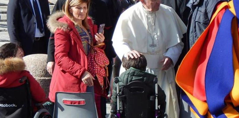 Arek wraz z mamą został zaproszony do sektora, w którym papież błogosławi chorych oraz rozmawia z nimi i ich bliskimi.