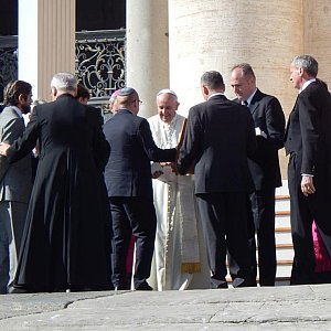 - Pielgrzymi z Sanktuarium MB Sianowskiej Królowej Kaszub zostali na audiencji powitani jako pierwsi w gronie pielgrzymów mieszkających w kraju i Polonii. - Papież wyściskał chłopaka oraz tradycyjnie pobłogosławił czyniąc znak krzyża na czole. Arek dostał obrazek, a pani Ola różaniec. To szczególna chwila dla niepełnosprawnych i chorych, którzy podjęli trud przybycia na audiencje z różnych stron świata. Później mieliśmy mszę w Bazylice Św. Piotra przy Grobie JPII. Była to msza polska transmitowana przez Radio Watykańskie. Koncelebrowało ponad 70 księży polskich i brało w niej udział kilkanaście grup zorganizowanych pielgrzymów z Polski.