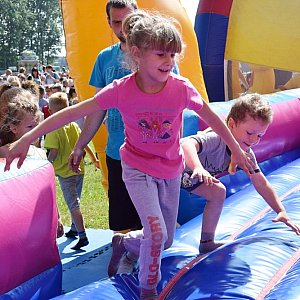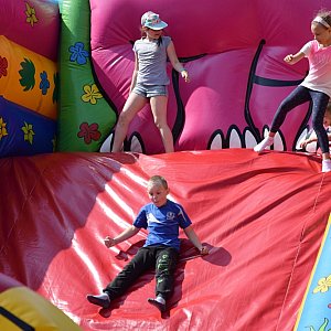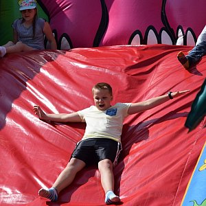 Dmuchane zjeżdżalnie, karuzele, elektryczne pociągi stanęły dziś na boisku przy gminnym stadionie w Przodkowie. Wszystkie atrakcje są darmowe, a uczniowie, przedszkolaki i jeszcze młodsze dzieciaczki z radością korzystają z możliwości zabawy.