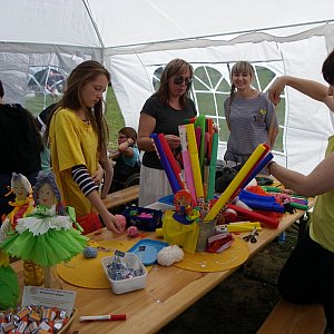 Od godziny 13.00 do 17.00 mniejsi i więksi milusińscy bawili się z animatorem tańcząc i biorąc udział w różnych konkursach z nagrodami, wzięli udział w plenerowych warsztatach plastyczno- technicznych przygotowanych przez pracowników SOSW w Żukowie oraz warsztatach z artystą rzeźbiarzem modelując w glinie. Niepełnosprawni wychowankowie Ośrodka zaprezentowali na scenie w taneczno ? muzyczne show (zespół Nutki oraz grupa taneczna Wolt) oraz przedstawienie pt. ?Nieco inna bajka o Czerwonym Kapturku- czyli Urodziny Bajkowej Babci?.