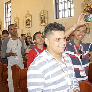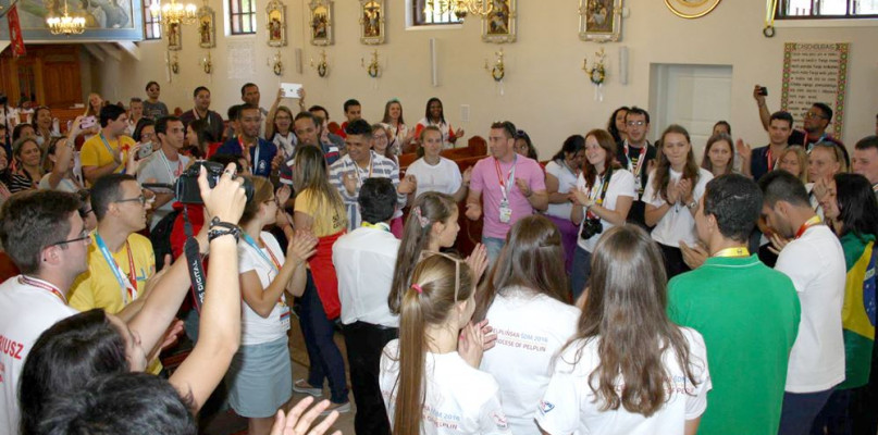 Młodzi uczestnicy Światowych Dni Młodzieży z Ekwadoru, Kolumbii, Meksyku i Brazylii oraz z Francji i Kanady gościli w Sanktuarium w Sianowie. Przywitał ich ks. Wojciech Trapkowski, sianowski wikariusz wraz z grupą miejscowej młodzieży.