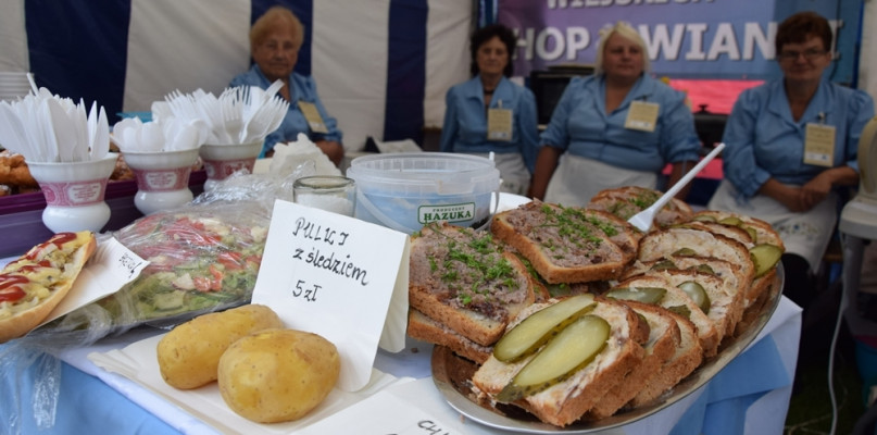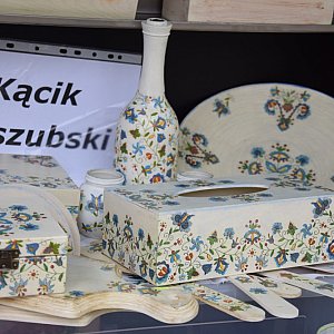 Na stoiskach można kupić specjały przygotowane przez Koła Gospodyń Wiejskich z powiatu kartuskiego. Są przetwory, domowe ciasta, chleb ze smalcem czy pulki ze śledziem. Swoje dzieła sprzedają też ludowi twórcy, nie brak atrakcji dla dzieci.