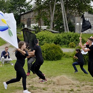 Tak właśnie powstała przestrzeń odkrywania potencjału, możliwość współdziałania, przenikania się różnych dyscyplin artystycznych i twórczych osobowości, jak również możliwość bycia razem "tu i teraz". Tak właśnie powstał spektakl "Dżdż" oparty na kaszubskim obrzędzie ścinania kani, który w ubiegły weekend mogli podziwiać mieszkańcy Czarnej Dąbrówki. Młodzież włożyła we wspólną pracę dużo energii oraz pomysłów i z pewnością zaprocentują one w przyszłych artystycznych projektach.
