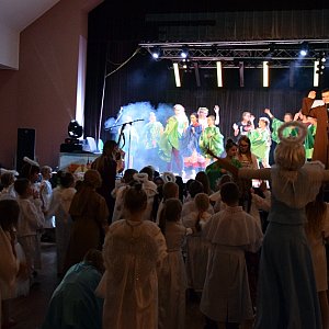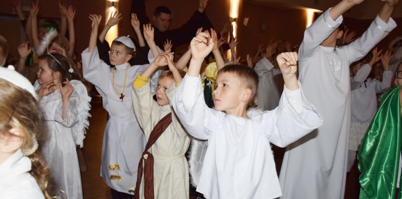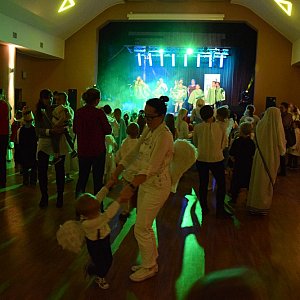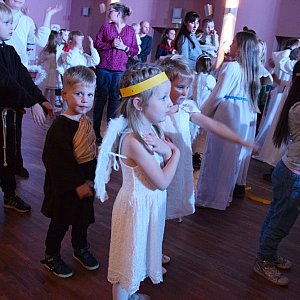 Na balu obowiązywały przebrania - koniecznie za świętych lub anioły. Było więc mnóstwo skrzydlatych postaci w bieli, nie zabrakło Matki Boskiej, Józefa, świętego Mikołaja, św. Jana Pawła II i wielu, wielu innych. Każde dziecko otrzymało także upominek.