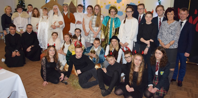 Uczniowie zaprezentowali wspaniałe jasełka, popisali się grą aktorską, a także talentami wokalnymi i grą na instrumentach. Zebrali gorące oklaski.