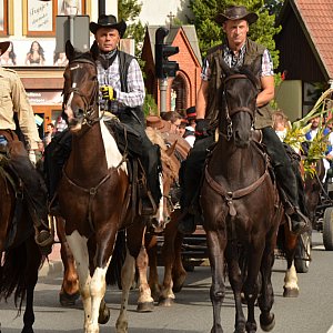 Pogoda dopisała, więc uroczysta msza św. dziękczynna odbyła się na Ołtarzu Papieskim. Po niej dożynkowy korowód przeszedł na plac przy amfiteatrze, gdzie odbyły się konkursy, turniej sołectw, a wszystko w atmosferze biesiady.