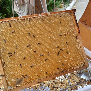 Podczas pikniku demonstrował także strój pszczelarski, akcesoria oraz żywe pszczoły. Uczestnicy sobotniego wydarzenia mogli również kupić różne rodzaje miodów od pszczelarzy z Pszczółek czy Cedrów Wielkich. Prezentowano ule z pszczołami, można było również skosztować ciast upieczonych przez gospodynie - nie zabrakło miodownika czy popularnej "pszczółki". Odbył się także kulinarny konkurs.
