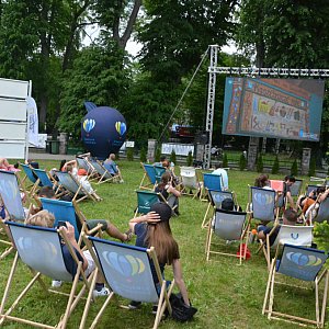 Nie tylko sala Kartuskiego Centrum Kultury była pełna, wielu, wypoczywając na leżakach, słuchało opowieści podróżników transmitowanych na telebimie.