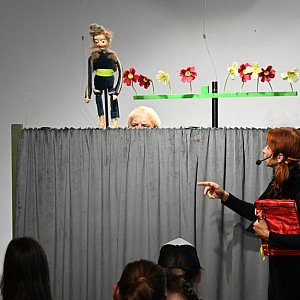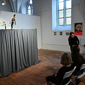 W Galerii Refektarz młodsi i starsi widzowie mogli zobaczyć bajkę o Czerwonym Kapturku w wykonaniu artystek z Alytus Leliu Teatras z Litwy.