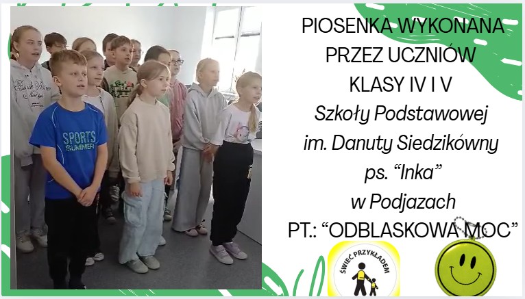 W ramach przedsięwzięcia Szkoła Podstawowa im. Danuty Siedzikówny ps. "Inka" w Podjazach skomponowała oraz nagrała piosenkę oraz film promujący bezpieczeństwo.
