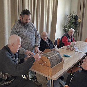 Pierwsze działania w domu seniora już się odbyły. Jedno z inauguracyjnych spotkań miało wyjątkowy charakter - gośćmi byli Pani Prządka oraz Pan Gręplarz, którzy poprowadzili warsztaty z zakresu tradycyjnego przetwarzania wełny.