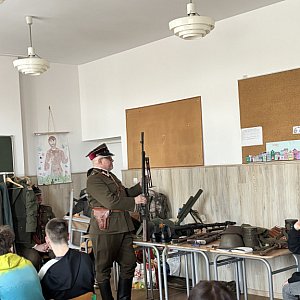 Prelekcjom towarzyszyła prezentacja umundurowania, elementów uzbrojenia oraz wyposażenia żołnierzy. Uczniowie mogli z bliska obejrzeć eksponaty oraz porozmawiać z prowadzącymi o realiach służby wojskowej w czasie II wojny światowej.