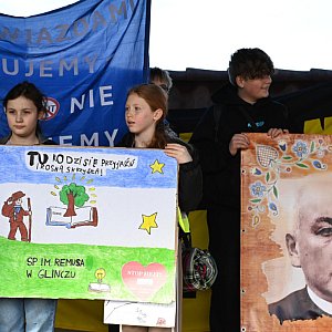 Na czele przemarszu szła burmistrz Żukowa wraz z przedstawicielami Młodzieżowej Rady Gminy Żukowo, niosąc baner z hasłem przewodnim wydarzenia: „Działaj z miłością do ludzi” oraz wizerunkiem ks. dr. Stanisława Sychowskiego, patrona szkoły w Skrzeszewie.