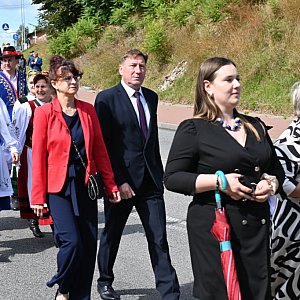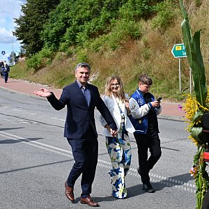 - Gminno-parafialne dożynki, na których się gromadzimy, są okazją, aby wyrazić dziękczynienie i podziw za ciężką pracę, którą co roku nasi rolnicy, sadownicy, ogrodnicy, pszczelarze wykonują na ziemi, na której mieszkamy. Praca rolnika wykonywana jest od tysięcy lat, ale od ponad stu lat praca rąk ludzkich zastępowana jest maszynami - mówił wójt gm. Chmielno. - Praca na roli jest zarówno pracą piękną, świadectwem, w jaki sposób człowiek potrafi podporządkować sobie naturę, ale pomimo tych wszystkich nowinek i udogodnień, jest pracą trudną i niebezpieczną, a niejednokrotnie niewdzięczną. Często bywamy świadkami braku wdzięczności i niezrozumienia tej pracy rolnika. Dziś dziękujemy za to, że w tym roku mamy ziarna i słomy pod dostatkiem. Oby tak było zawsze. Dziękujemy rolnikom za tę piękną i trudną pracę, jaką wykonują dla nas wszystkich.
