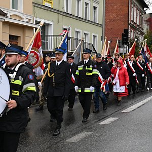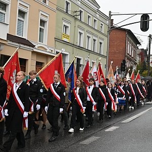 Poczty sztandarowe, delegacje, zaproszeni goście, zgromadzili się przed budynkiem Urzędu Miejskiego w Kartuzach. Następnie wszyscy udali się do kartuskiej kolegiaty, po drodze zatrzymując sie przy figurze świętego na Placu Brunona. Tam złożone zostały kwiaty.