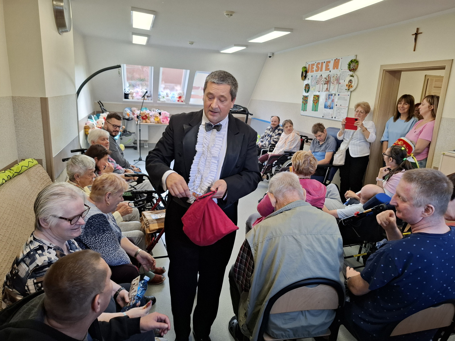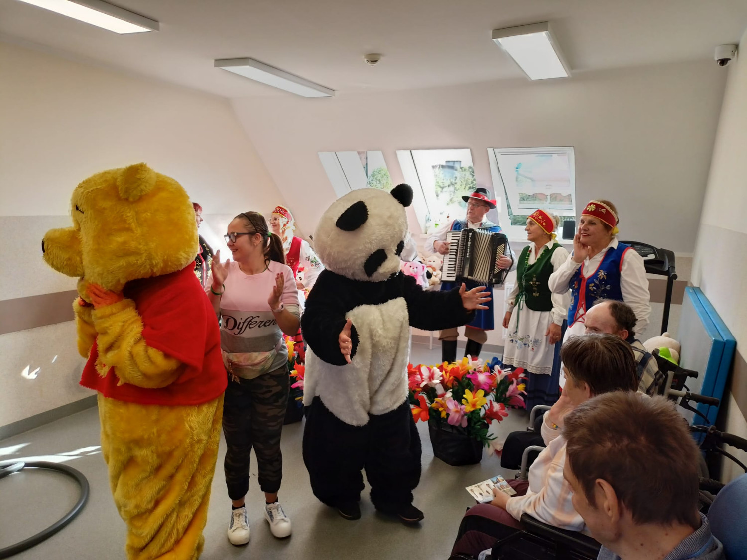 Pojawiły się maskotki z bajek: Kubuś Puchatek i miś Panda, rozbawiając pensjonariuszy, a w które wcieliły się osoby z grupy tanecznej. Przedstawiony program wzbudził wiele radości i wzruszeń. Podczas przedstawienia artystycznego wręczone zostały maskotki, widokówki z klasztorem franciszkańskim i sanktuarium w Toruniu.