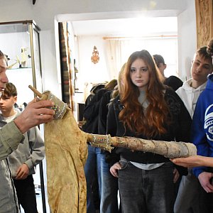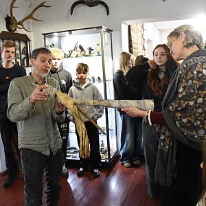 Konstruktor instrumentu Janusz Świątkowski - zaprezentował dziś kaszubskie dudy w Muzeum Kaszubskim w Kartuzach. Młodzież, która odwiedziła dziś muzeum miała okazję posłuchać historii tego niezwykłego instrumentu, a przede wszystkim posłuchać jego brzmienia. Gra na kaszubskich dudach wymaga nie lada umiejętności, ponieważ trzeba pilnować ciśnienia w miechu uruchamiającym stroik, a do tego wygrywać melodię na flecie.